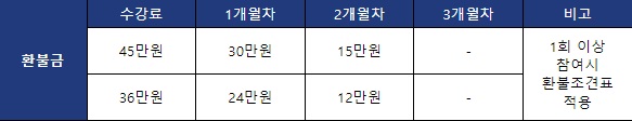 ? 신청마감 : 2025. 12. 23.(화) ? 입금계좌 : 신한은행 140-004-147569, 예금주 : 대한변호사협회 ? 입금 시 유의사항 ① 반드시 지정한 계좌로 입금 ② 동명이인 구분을 위해 신청자 성명과 등록번호 병기 (예 : 박보검 1234) ③ 법인명으로 입금 시 협회에 통지 ④ 입금자를 확인할 수 없을 경우 신청 취소 처리 ? 신청방법 : ① 공문하단의 신청하기 버튼을 클릭해서 신청 ② 협회로 수강료 송금 ③ 익일에 기재한 메일로 입금확인증 송부 예정 ? 환불신청 : 수강철회를 하고자 할 경우 환불 의사 및 계좌번호를 기입하여 메일(edu@koreanbar.or.kr)로 회신주시기 바랍니다. <표, 환불조견표>